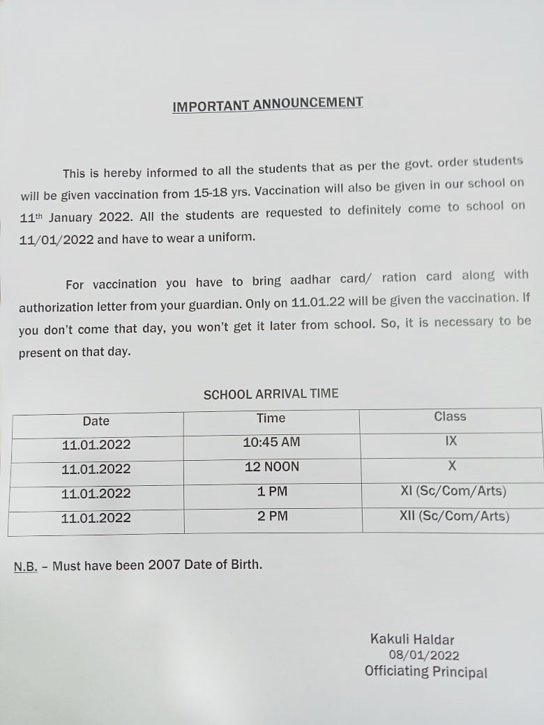 This IS hereby informed to all the students that as per the notification given by State Govt. memo no-38/SSE/2022 dated 31/01/2022,
